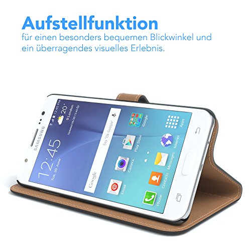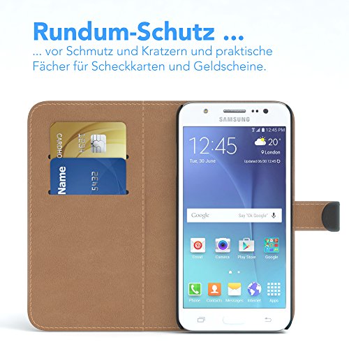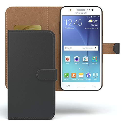 EAZY CASE Tasche für Samsung Galaxy J5 (2015) Schutzhülle mit Standfunktion Klapphülle im Bookstyle, Handytasche Handyhülle Flip Cover mit Magnetverschluss und Kartenfach, Kunstleder, Schwarz