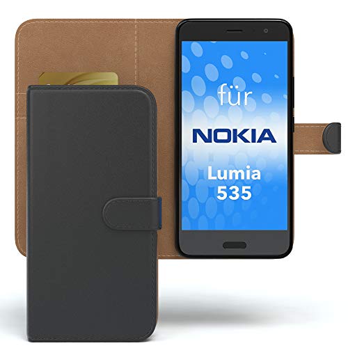 EAZY CASE Hülle für Nokia Lumia 535 Bookstyle mit Standfunktion, Book-Style Case aufklappbar, Schutzhülle, Flipcase, Flipstyle, Flipcover mit 2 Kartenfächern aus Kunstleder, Schwarz