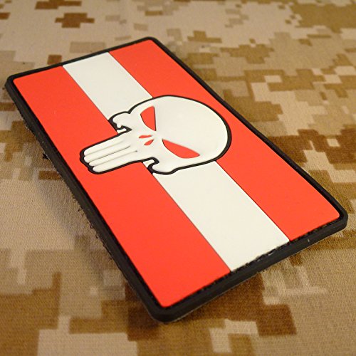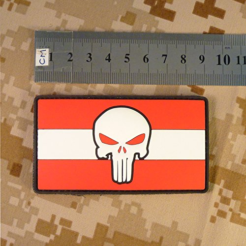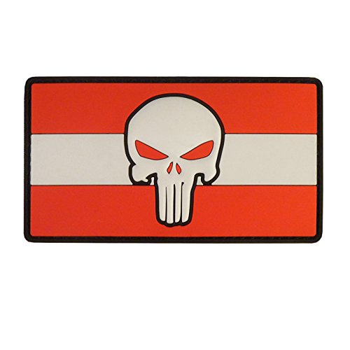 2AFTER1 Punisher Skull Austria Österreich Flag Morale Tactical Combat PVC Rubber Touch Fastener Patch