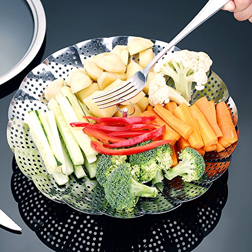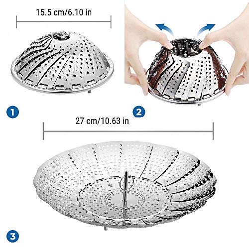Ecooe Edelstahl Dampfgarer Einstellbar Dünsteinsatz (15.5cm-27cm) Dämpfeinsatz für Kochtöpfe