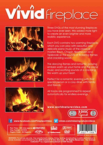 Lebhafte Kaminfeuer DVD – 3 DVD Set mit extra langen Feuern mit warmen Farben und Geräuschen von brennendem Holz