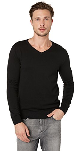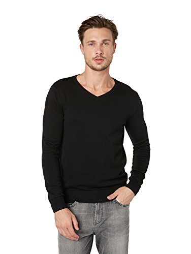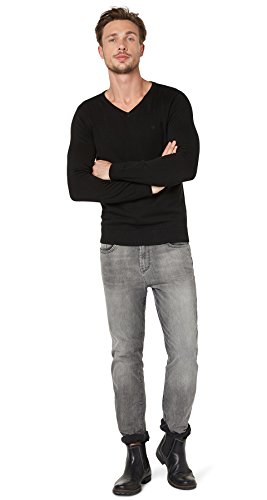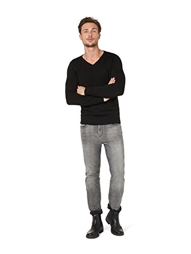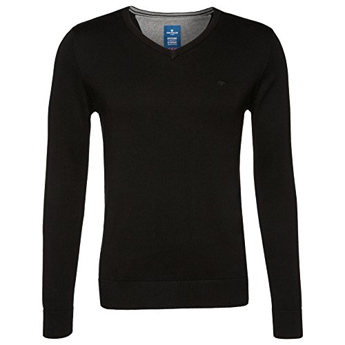 TOM TAILOR Herren Pullover Basic V-Neck Sweater, Blau (Rock Oil Blue Melange 6047), M