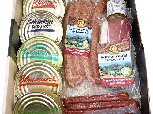 Schwarzwald Metzgerei - Geschenkset "Dosenwurst und meehr" mit verschiedenen Wurtsspezialitäten, Altbadischem Senf, Schinken und Speck - 10-teilig