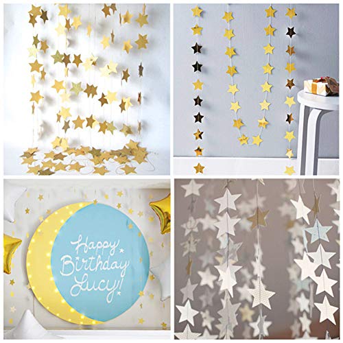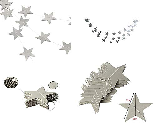 Da.Wa Stern Muster Girlande Hänger Sternkette Weihnachten Verzierung Deko (4M,Silber,Set of 1)