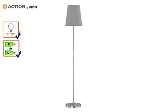 ACTION by WOFI 332901506000, Standleuchte, Serie: Fynn, Farbe: Nickel matt, Farbe (Schirm): grau, 1
