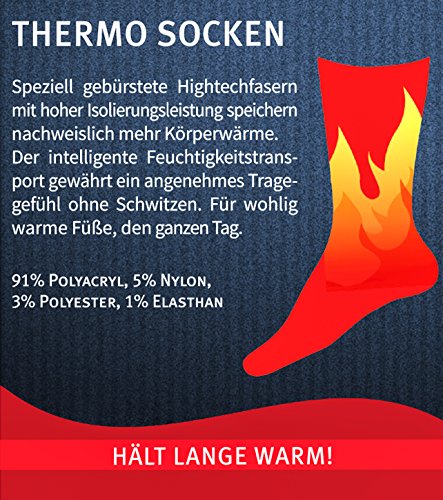 Brubaker 2 Paar Heat my Feet Unisex Thermo Socken Schwarz Größe 43-46