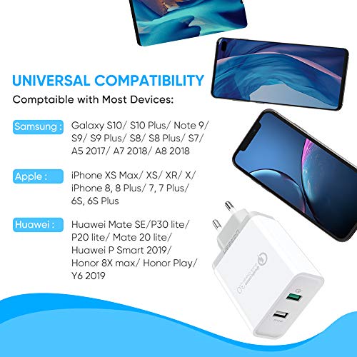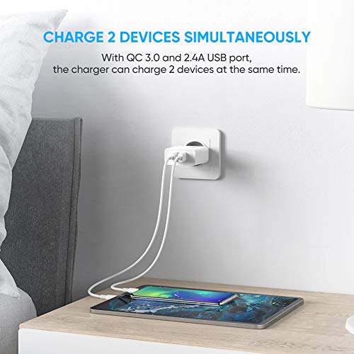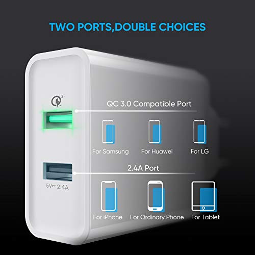 - DUAL AUFLADEN: QC 3.0 bietet einen größeren Bereich der Spannung an. 200MV Zunahme von 3.6V auf 12V. Der 5V 2.4A Port kann den iPad, iPad Air aufladen. Die duale Anschlüsse lassen Sie zwei normale Geräte (iPad, iPhone usw.) gleichzeitig aufladen bei bis zu 4,8 A Gesamtleistung.