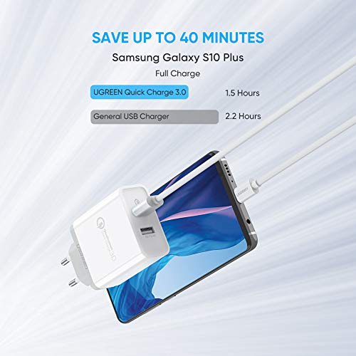 UGREEN USB Ladegerät 30W Handy Schnellladegerät 2 Ports Ladeadapter QC 3.0 unterstützt für Samsung S10 S9 S8 Note8 A50 A40 M30 M20,Huawei Mate8 P9,Xiaomi mi6, Sony Xperia XZ5,LG V30,MP3 usw (Weiß)