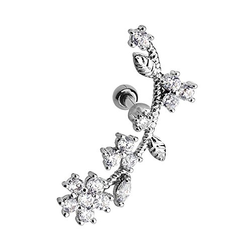 Piercingfaktor Tragus Helix Ohr Cartilage Knorpel Piercing 316 L Chirurgenstahl Stecker mit Kristall Blumen Kugel Silber