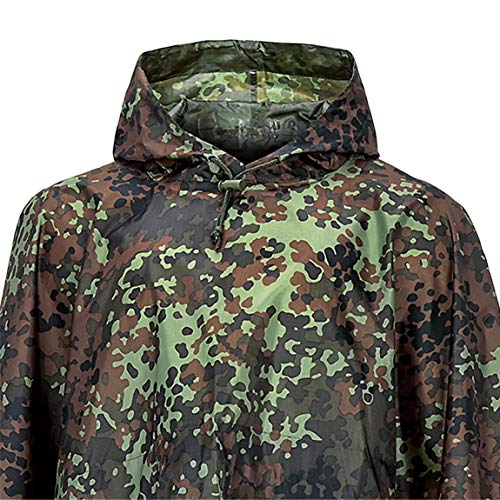 Outdoor Regenponcho | Ripstop Regencape mit Kapuze | Regen Poncho inkl. Tasche | Regenjacke für Damen und Herren - Flecktarn