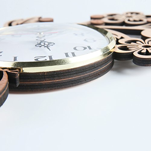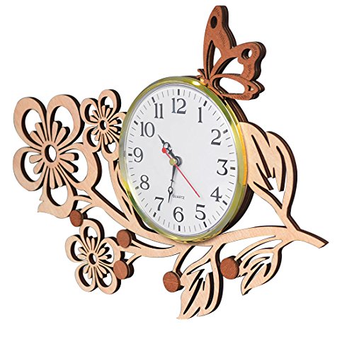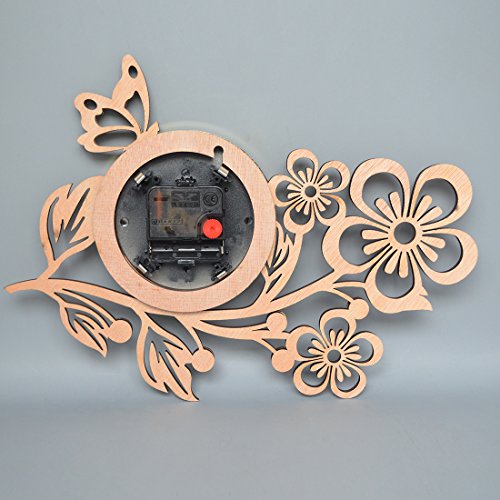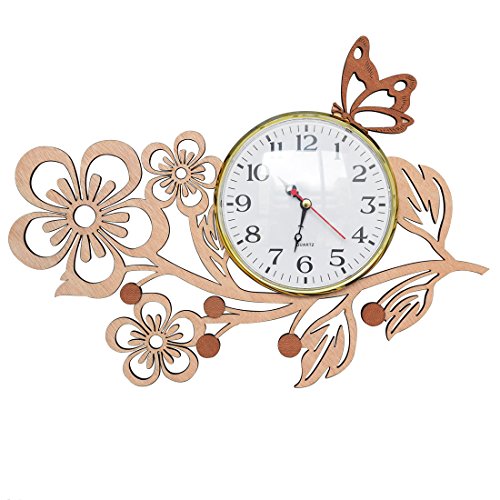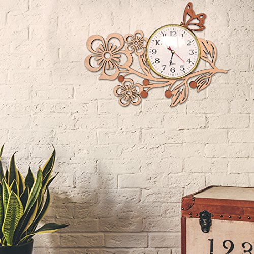 Giftgarden Wanduhr Holz Küche Whonzimmer modern fünf Blätter Blumen mit Schmetterling Uhr Wand Deko Geschenk Freund