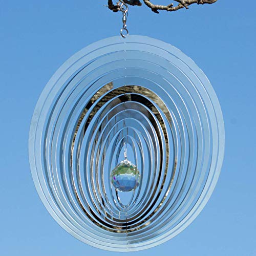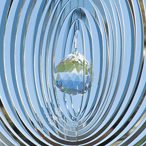 CIM Edelstahl Deko Windspiel - Mirror Crystal Oval - Abmessung: 20 x 20cm - mit Kristallglaskugel, Kugellagerwirbel und Haken - (Oval)