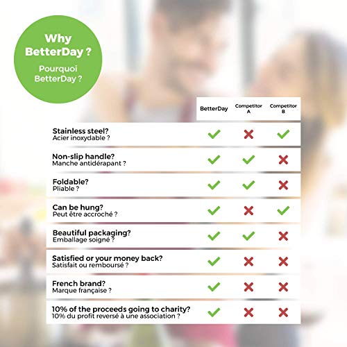 - ✅ BETTERDAY ENGAGIERT SICH UND ÜBERNIMMT VERANTWORTUNG - Die Marke BetterDay wurde von einem kleinen französischen Familienunternehmen gegründet, das sich der Welt bewusst ist, in der wir leben, und den Wunsch hat, seinen Beitrag zur Schaffung einer besseren Welt zu leisten. Es spendet einen Teil seiner Gewinne an Save The Children - um sicherzustellen, dass Kinder weltweit genug zu essen haben, zur Schule gehen, Zugang zu medizinischer Versorgung haben und vor Schaden bewahrt werden.