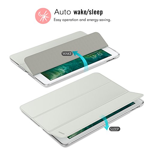 MoKo Hülle Kompatibel für iPad 9.7 2017/2018, 5./6. Generation - PU Leder Tasche Schutzhülle Schale Smart Case mit Transluzent Rücken Deckel Auto Schlaf/Wach Stanfunktion, Silber