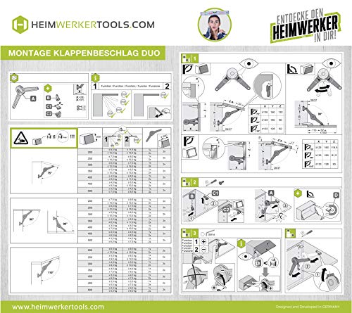Kesseböhmer Duo Klappenbeschlag verstellbar für Klappenhöhe: 200-500 mm | Klappen-Scharnier inkl. Montageanleitung | Klappenhalter Stahl vernickelt | 2 Stück - Klappen-Stützen mit Halterungen