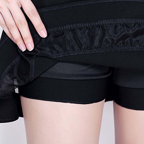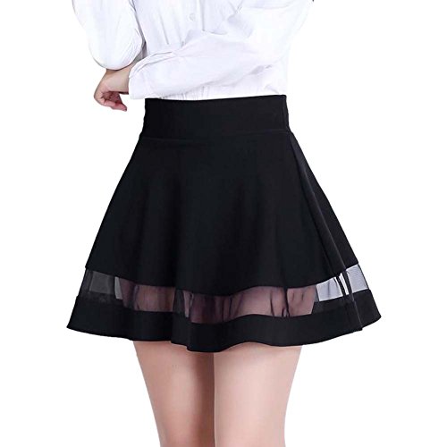 Damen Mädchen A-Line Mini Skater Rock Hohe Taille Faltenrock Garn Schwarz M
