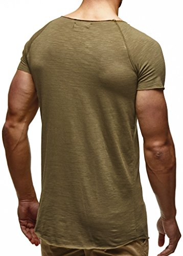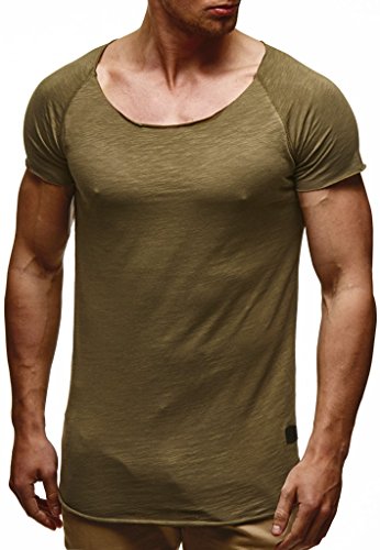 Leif Nelson Herren Sommer T-Shirt Rundhals-Ausschnitt Slim Fit Baumwolle-Anteil Moderner Männer T-Shirt Crew Neck Hoodie-Sweatshirt Kurzarm lang LN6340N Khaki Medium