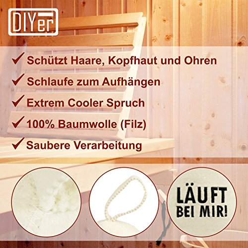 DIYer - Saunahut - inkl. Sauna-Ratgeber - Motiv Aufschrift - Läuft bei mir!