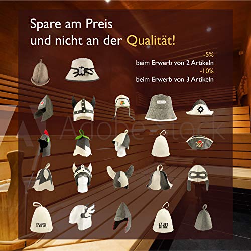 - 100% BAUMWOLLFILZ – Die Filzmütze besteht aus 100% Wollfilz und ist in natürlichen Farben gehalten, sodass kleinere Farbabweichungen möglich sind. Bitte waschen Sie die Sauna Mütze ausschließlich mit der Hand.