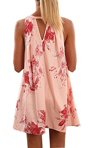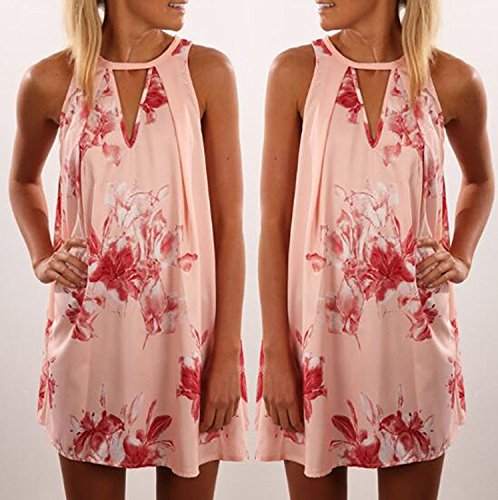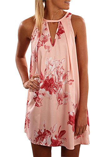 Minetom Damen Sommer Böhmen Minikleid Frauen A-Linie Kleid V-Ausschnitt Ärmellos Strandkleider Beilaeufiges Abend Strand Kurzschluss Minikleid Partei Dress