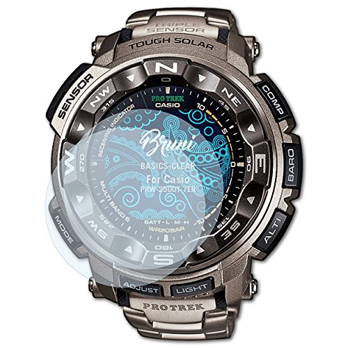 Bruni Schutzfolie kompatibel mit Casio PRW-2500T-7ER Folie, glasklare Displayschutzfolie (2X)