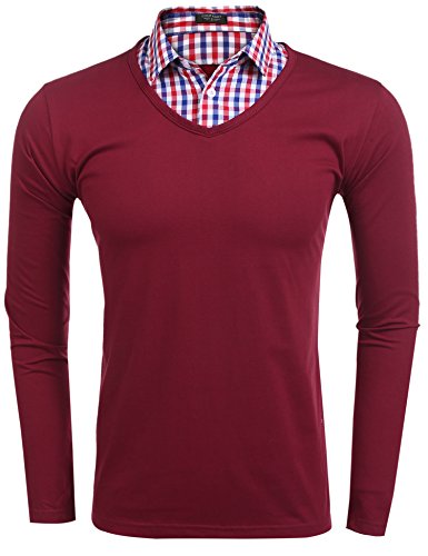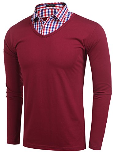 Burlady Herren 2 in 1 Karierthemd Kragen Pullover Langarmshirt mit Hemd Für Männer, Freizeit & Business