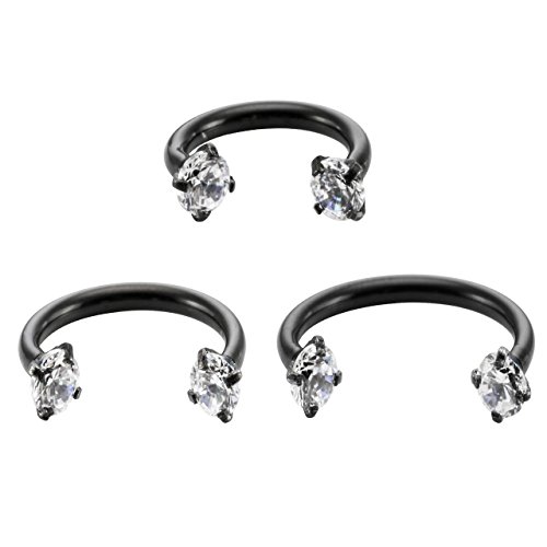 PiercingJ 3X 1.2mm 316L Edelstahl Zirkonia Ohrring Lippen Nase Brust Helix Tragus Ohr Piercing Septum Ring Hufeisen Circular Barbell Ohrpiering, Silber/Gold/schwarz/bunt/rosagold
