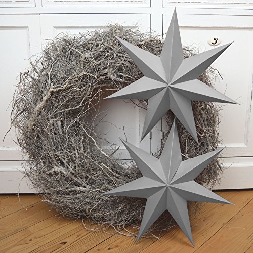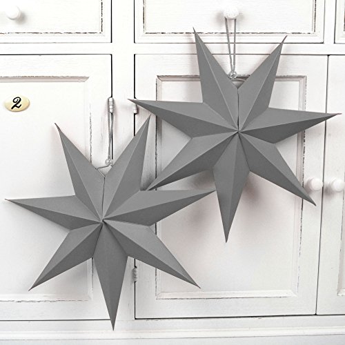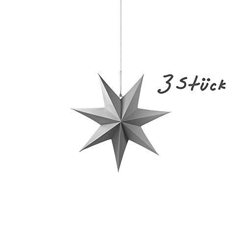 Frau WUNDERVoll® liebevolle Faltsterne grau 3 Stück Durchmesser 25 cm 7 Zacken geschlossene Oberfläche Feste Pappe