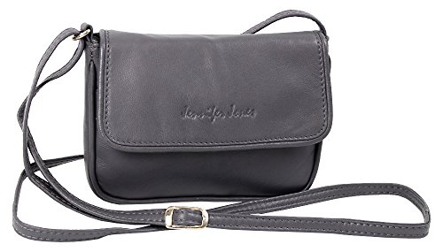 Jennifer Jones Taschen Damen 100% Leder Damentasche Handtasche Schultertasche Umhängetasche Tasche klein Crossbody Bag grau / schwarz / taupe (6125)