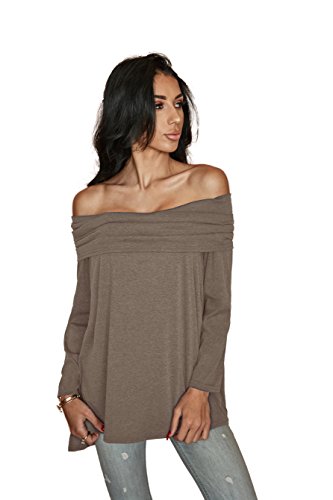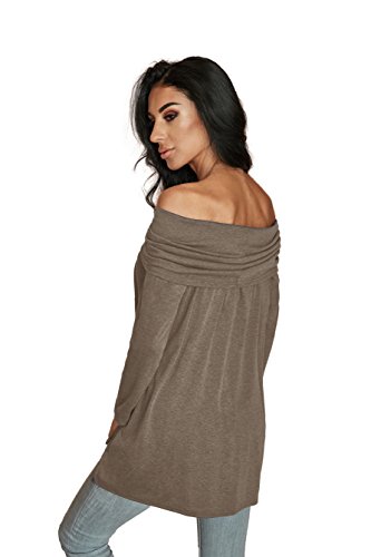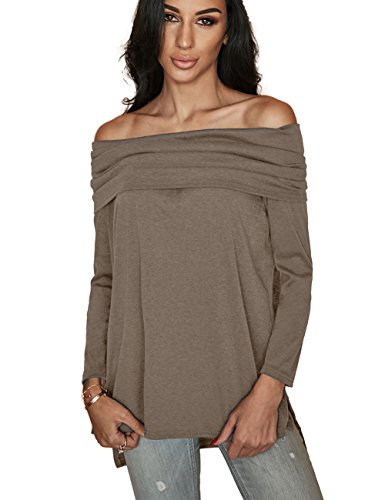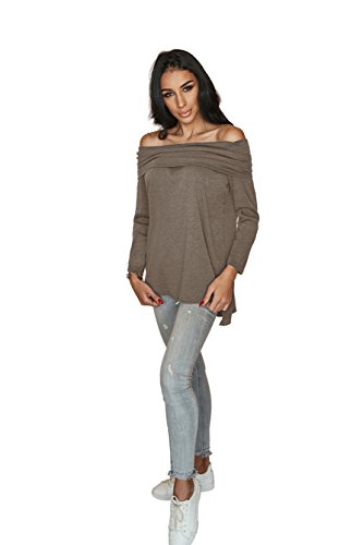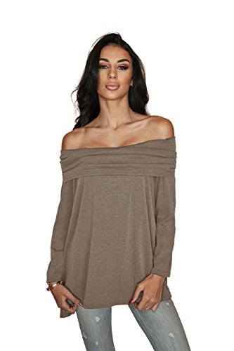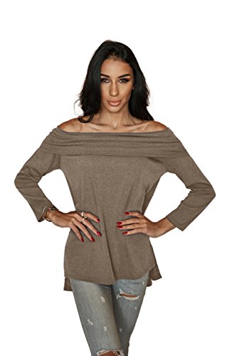 Boutiquefeel Damen Schulterfreie Fold-Over Lange Ärmel Tops Shirt