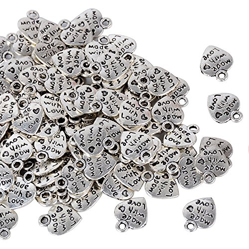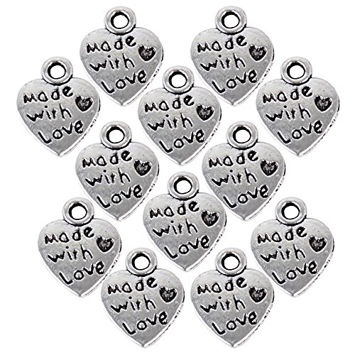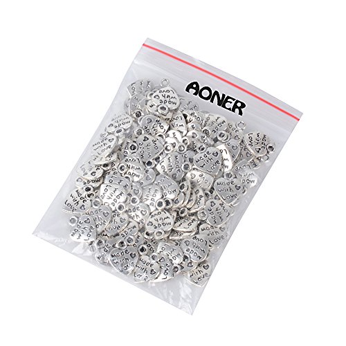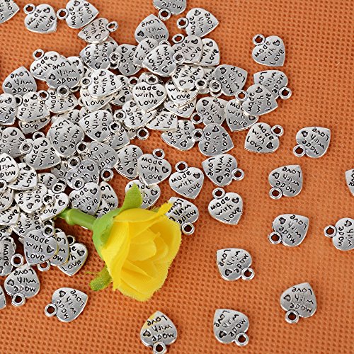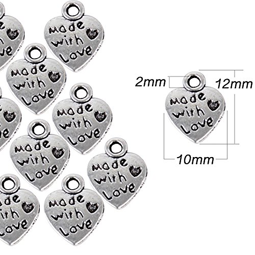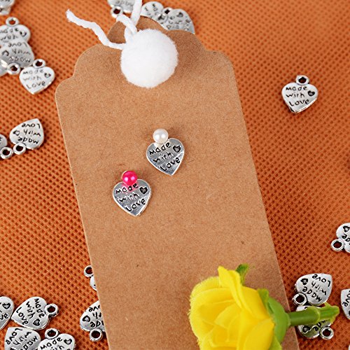 AONER 100 Stück Mini Anhänger Made with Love Herz Anhänger Charms Perlen für Gastgeschenk Hochzeit Geschenkbox Armband Schmuck Herstellung Findings Zubehör DIY Handwerk usw