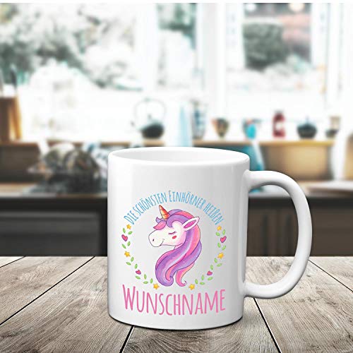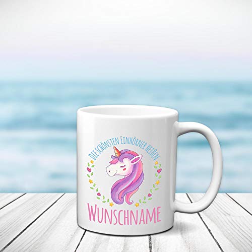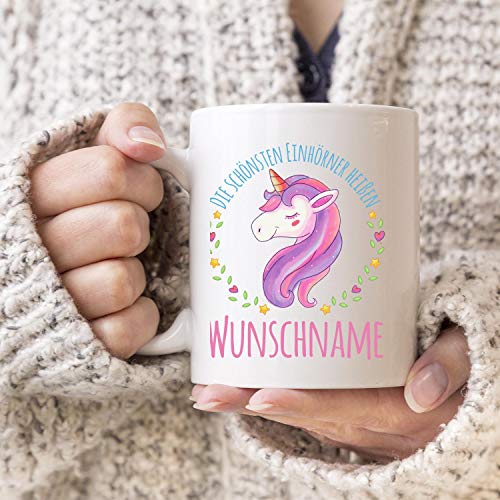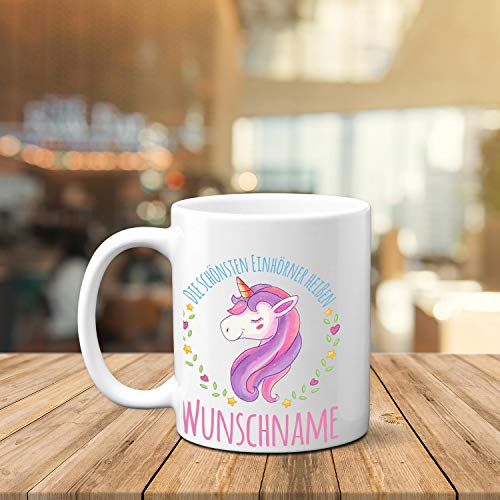 Partycards Personalisierte Tassen als Geschenkidee mit verschiedenen Motiven - Kaffebecher (Die schönsten Einhörner heißen …, 330ml)