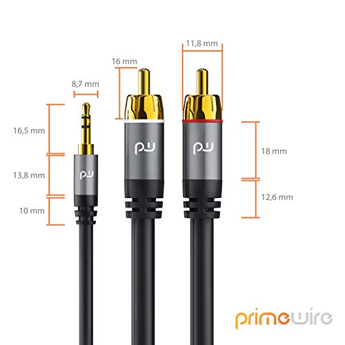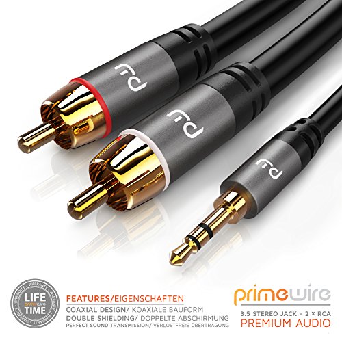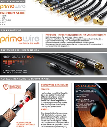 - Modellbezeichnung: Primewire Premium High Quality AUX Klinkenstecker zu 2x Cinch Stecker 3,5mm Audio Anschlusskabel | Perfekter Sitz durch spezielle Steckerkonstruktion: Die zugeschnittene Steckerkonstruktion mit flexiblem Klemmsystem sorgt für einen optimalen Halt und eine verbesserte Leitfähigkeit. Die robusten Steckersegmente passen sich ideal der Buchse an und sorgen stets für einen festen Sitz.