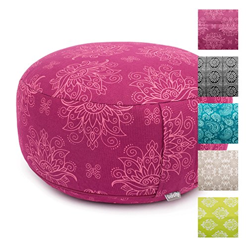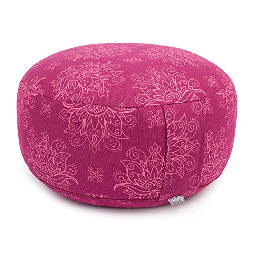Meditationskissen RONDO"Lotus", berry, Maharaja Collection, Baumwoll-Bezug (Köper) abnehmbar, Dinkel-Füllung, ca. 32 x 17 cm, mit praktischer Trageschlaufe
