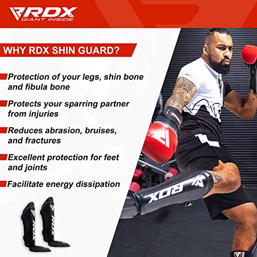 RDX MMA Schienbeinschoner für Kampfsport Training | Genehmigt von SMMAF | Maya Hide Leder Muay Thai Schienbeinschutz Spannschützer | Schienbeinschützer für Sparring, Kickboxen, Karate, BJJ (MEHRWEG)