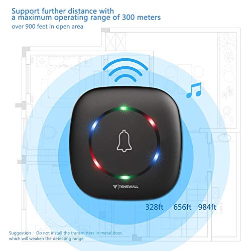 - 1000 Fuß Funktionsradius (Im Freien):Durch die drahtlose Übertragung kann diese Türklingel überall eingesetzt werden, wo eine Montage einer Türglocke mit Verkabelung nicht möglich oder zu teuer wäre. Mit einer Reichweite von maximal 300 Metern im offenen Raum ist .