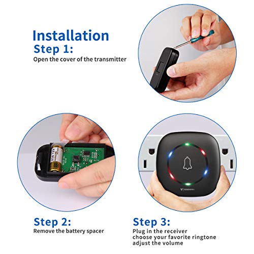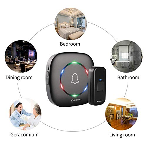 - Smart 9 Arten von einstellbaren LED-Blinklicht: Jedes Mal, wenn jemand die Sendertaste drückt, blinken sowohl der Sender als auch der drahtlose Empfänger im Kreisbereich. Auf diese Weise können Ihre Besucher wissen, ob die Klingel läutet und Sie werden durch das LED-Blinklicht in der Wohnung benachrichtigt, wenn Sie Kopfhörer oder Ohrstöpsel tragen!