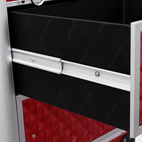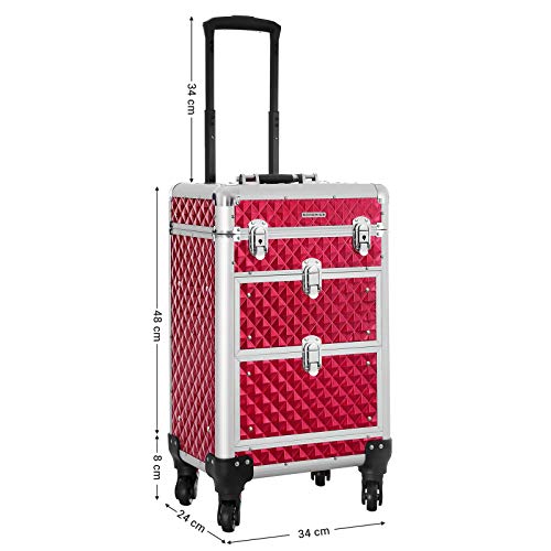 SONGMICS Kosmetikkoffer Trolley, Professionell Schminkkoffer, Friseurkoffer mit 4 Abnehmbaren Universalrollen, Oben mit 3 Etagen, Rot JHZ08RD
