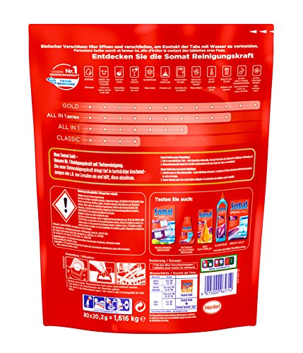 - Die Somat Gold Tabs mit Tiefenreinigung bieten die beste Somat-Leistung gegen Eingebranntes und entfernen Cerealien sogar mühelos.