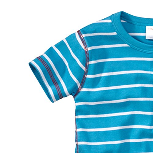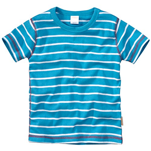 WELLYOU, Kinder Kurzarm T-Shirt, türkis-Weiss, Geringelt, für Jungen und Mädchen, 100% Baumwolle