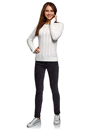 oodji Collection Damen Gestrickter Pullover mit Zopfmuster
