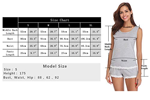 - Kurzer Schlafanzug mit Tank Top und kurzem Shorts, Aus softer, weicher Baumwolle, Das Material ist weich, bequem, löst keine Allergien aus und lässt die Haut atmen. Baumwolle ist für Personen mit sehr empfindlicher Haut geeignet.