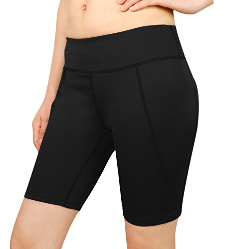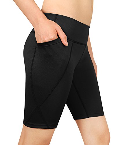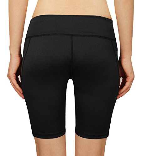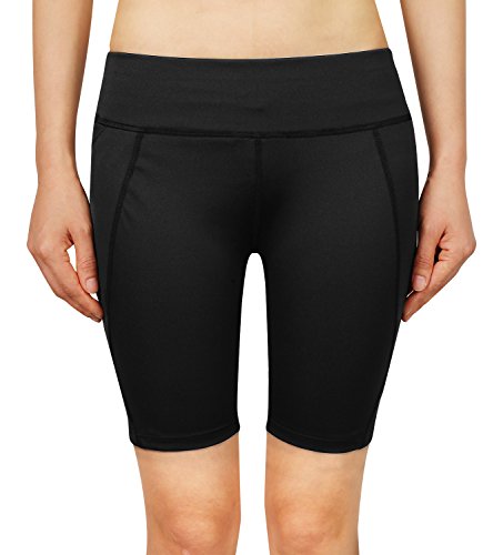 Cassiecy Damen Compression Sports Shorts Yoga Running Fitness Stretch Tights Kurze Hosen (S, Schwarz)