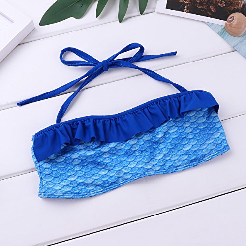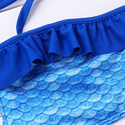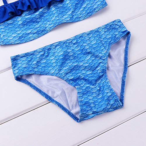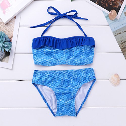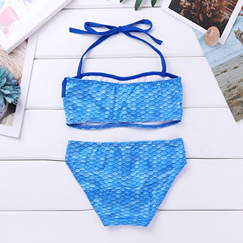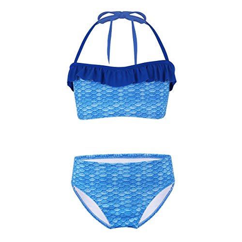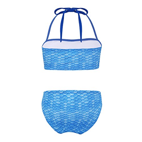 iiniim Mädchen Zweiteiler Bikini Tops+Badehose Badeanzug Meerjungfrau Skala Druck Schwimmanzug Bademode Set Gr.116-176 Blau 176/16 Jahre