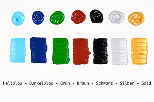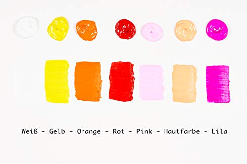 - QUALITÄTSFARBE – 14 verschiedene Basic & Metallic-Farben (jeweils 1x weiß, gelb, orange, rot, pink, haut-farbe, hell-blau, dunkel-blau, violett, grün, braun, schwarz, gold, silber), lichtecht, schnell-trocknend, mit sehr guter Farbkraft & gesundheitlich unbedenklich
