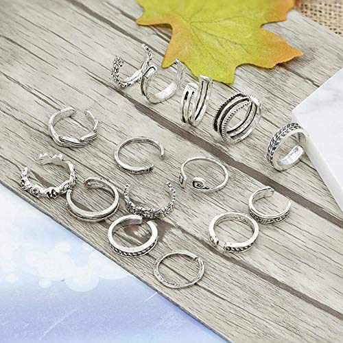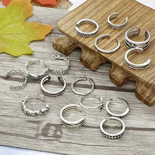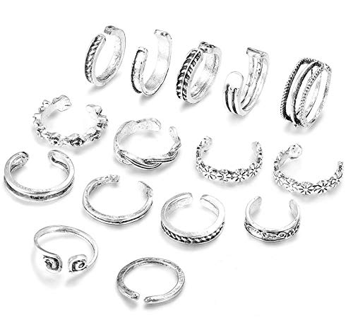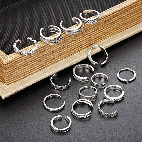 sailimue 15 PCS Zehenringe Ring Set für Damen Vintage Open Ring, Einstellbar