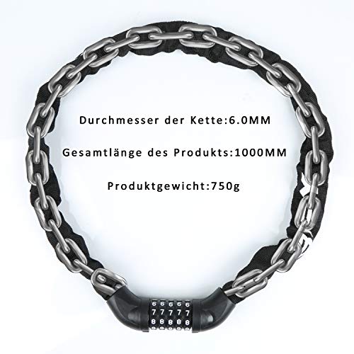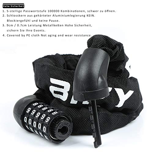 BIFY Fahrradschloss, Fahrradschloss Zahlen Stahlkettenglied 38mm x920mm 650g Kettenschloss für Fahrräd, Motorräd und Elektrofahrzeuge(Schwarz)
