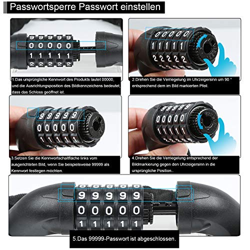 - Verwendung der BIFY-Codesperre: Die Länge der Codesperre beträgt 92 cm. Eine ausreichende Länge ist ideal, um Fahrräder, Roller oder andere Gegenstände vor Diebstahl zu schützen. Wird nicht von der Temperatur beeinflusst.
