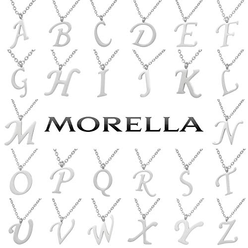 Morella Damen Halskette mit Buchstaben Anhänger Edelstahl Silber in Schmuckbeutel