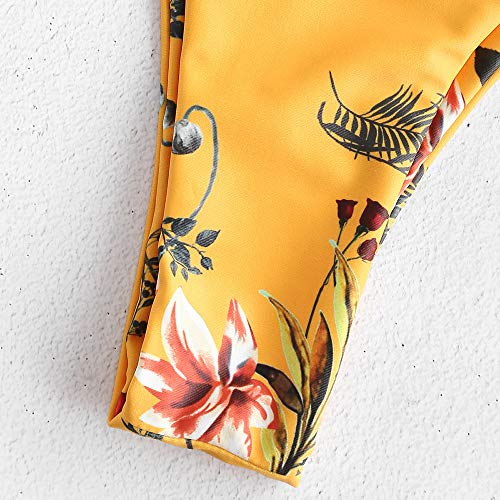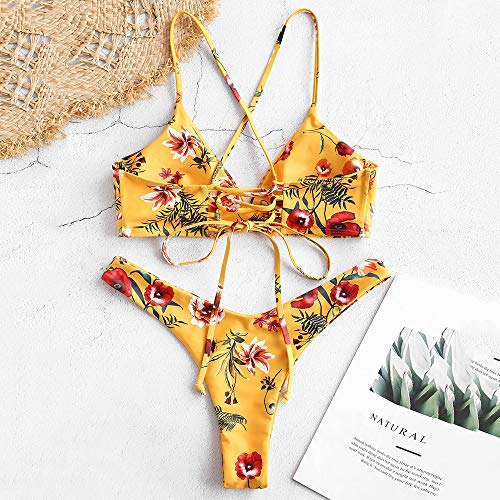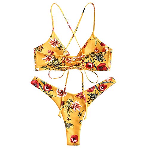 ZAFUL Damen Bikini-Set Geblumtes Bikini Set mit Schnürung Push Up Gepolsterte Bademode Bikinis Swimwear Swimsuit Gelb Medium